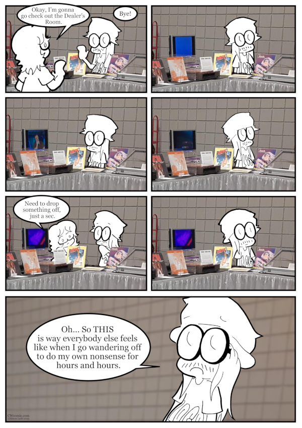 Yeah, I spent around 90% of my time minding the tables at the museum on Sunday, to make up for all the time I spent away on Friday and Saturday… gathering up material for comics that wound up getting cut[…]↓ Read the rest of this entry…