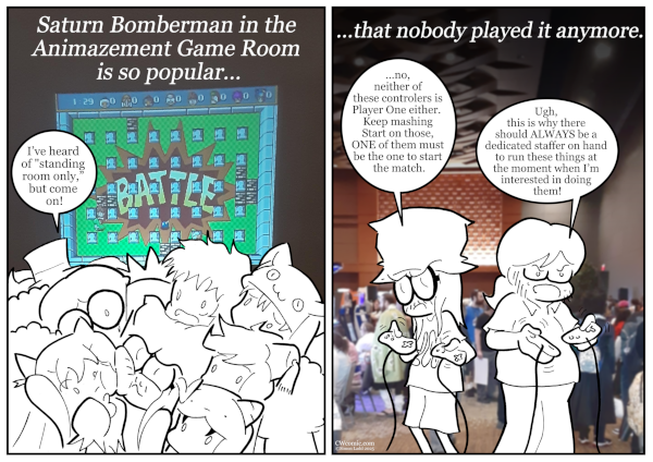 Now, I want to be clear that this page isn’t trying to suggest that people just don’t care about the traditional big–screen Animazement Saturn Bomberman instillation AT ALL anymore, just that the crowd levels fluctuated wildly the one time I[…]↓ Read the rest of this entry…